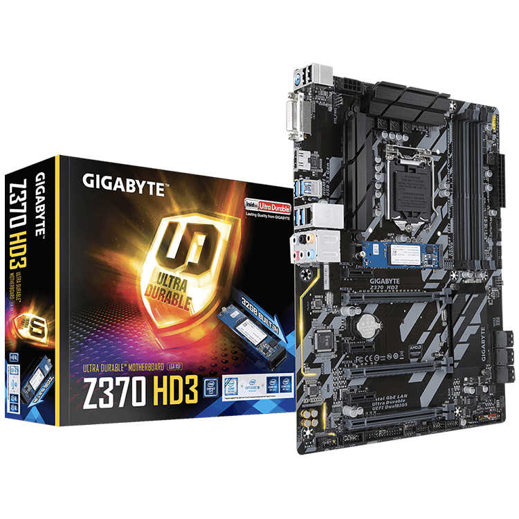 เมนบอร์ด GIGABYTE Z370 HD3-OP รองรับหน่วยความจำ Intel Optane 32GB ชิปเซ็ต LGA 1151 สำหรับเล่นเกม