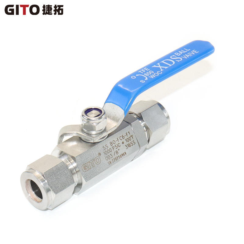 ข้อต่อสแตนเลส 304 ขนาด 3/8 นิ้ว ยี่ห้อ GITO แบบ Double Compression Fitting พร้อมวาล์วบอล BO ทนแรงดัน 1000PSI ดีไซน์แบบตรงผ่าน