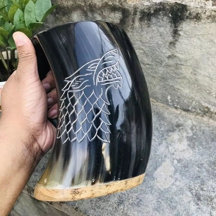 เหยือกเบียร์และกาแฟทำมือแกะสลักแบบไวกิ้งทำจากธรรมชาติสำหรับบ้านโรงแรมร้านอาหาร