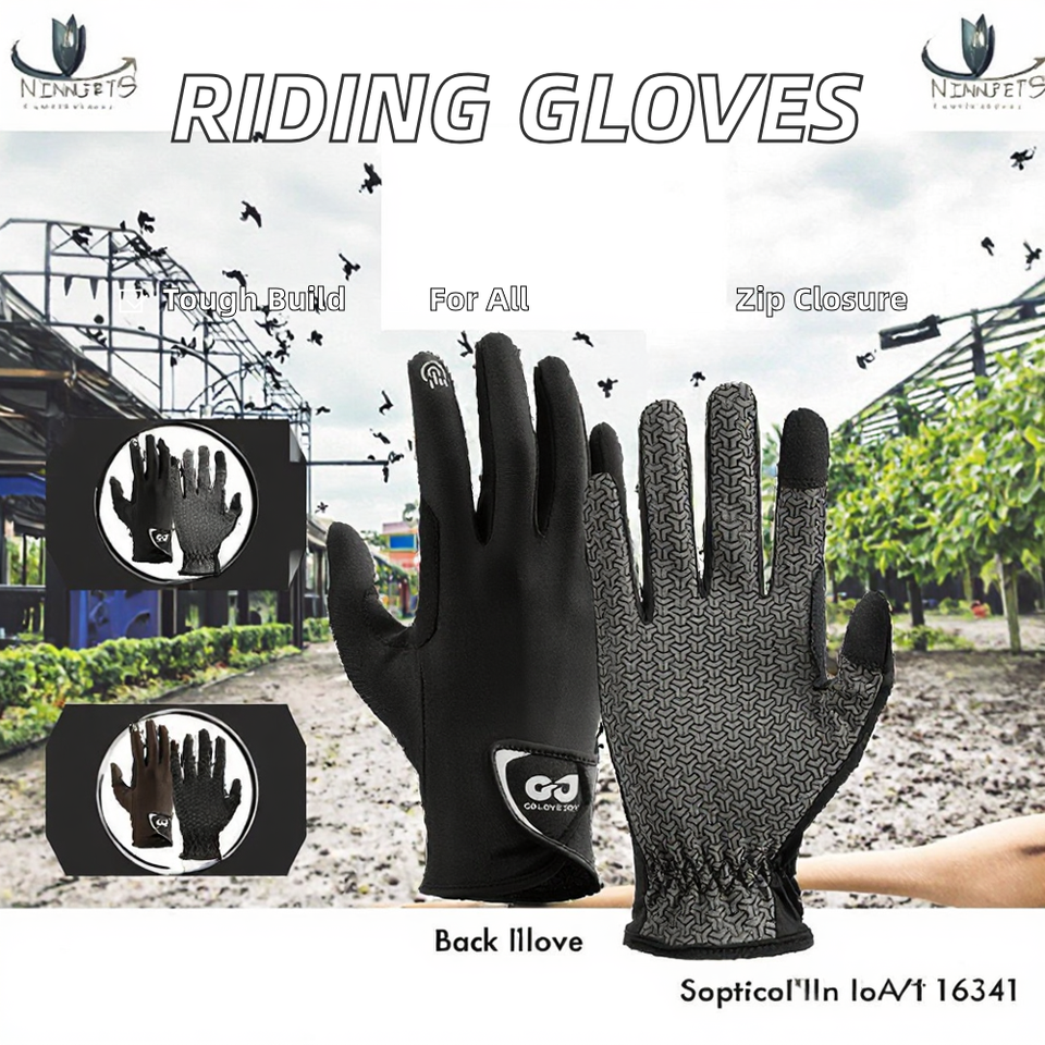 ถุงมือขี่ม้าหนังคุณภาพสูง GJ XG83 แบบกำหนดเองสำหรับผู้ชายและผู้หญิง สไตล์ OEM พร้อมโลโก้ สำหรับกีฬากลางแจ้งและกีฬาขี่ม้า สีดำ ปิดด้วยซิป