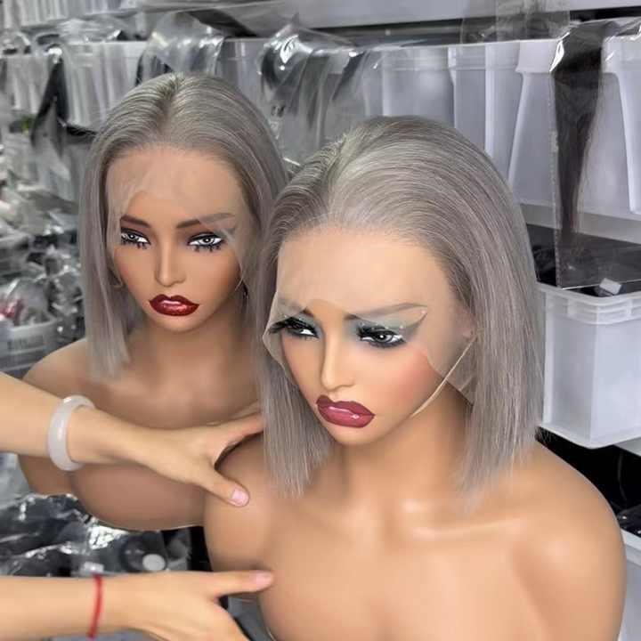 GL วิกผมสีบ๊อบวิกผมสีชมพูสีม่วงสีฟ้าสีเหลืองสีแดงสีเขียวสีบลอนด์613ผมบ๊อบวิกผมแท้สำหรับผู้หญิงผิวดำ