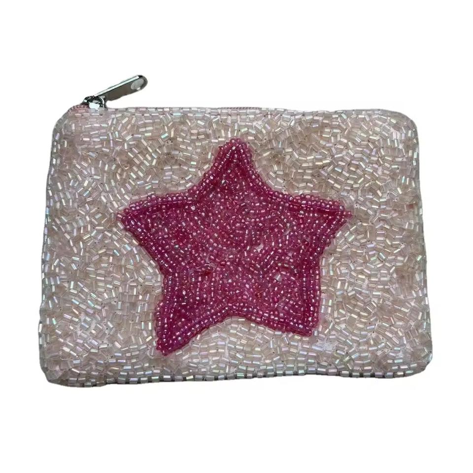 กระเป๋าใส่เหรียญปักลายด้วยมือประดับลูกปัดคริสตัลสีดำรูปดาว งานฝีมือแบบชนเผ่า สำหรับผู้หญิง แฟชั่นเก๋ไก๋