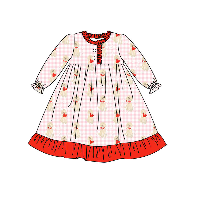 GLD1322 Custom Little girl Boutique Pink Plaid Puppy valentine dress kid wholesale baby girl long sleeve dress child sister set