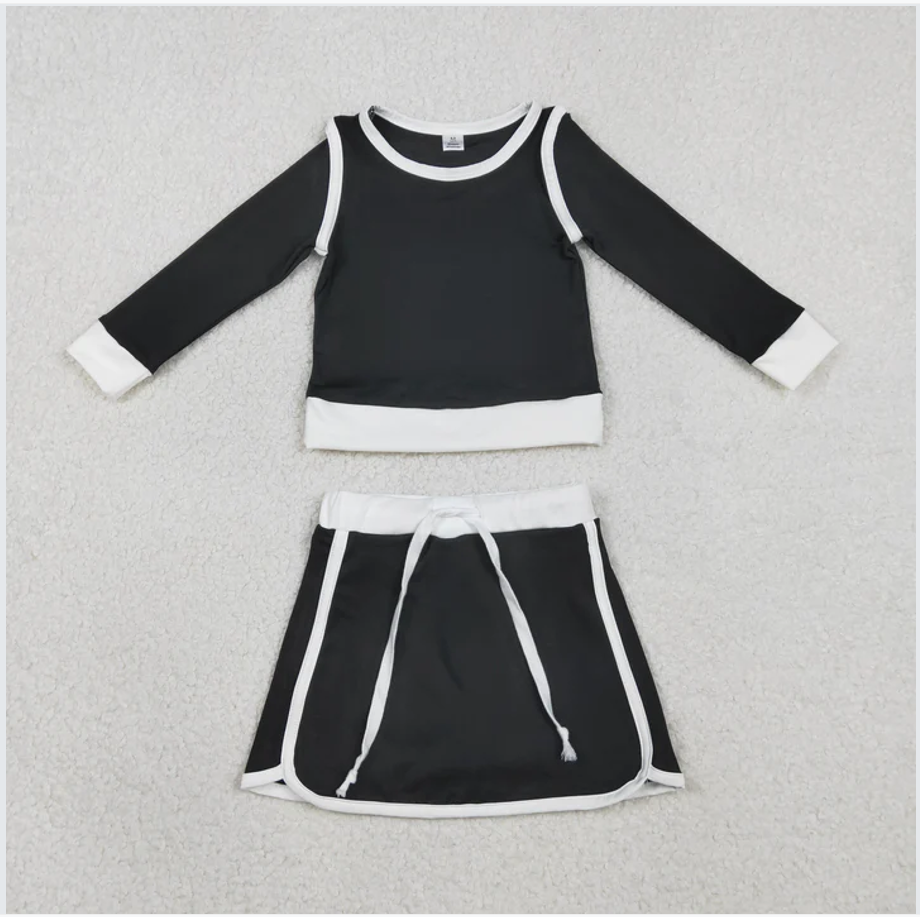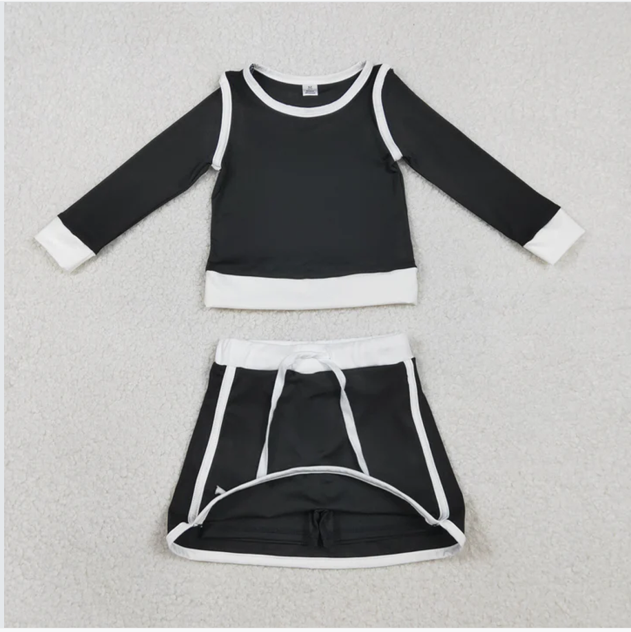 GLD1481 Solid Color Black Yoga Girls Skorts Set