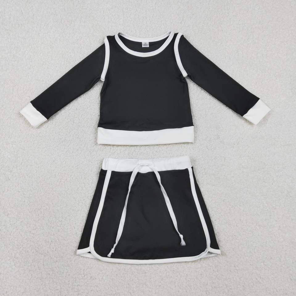ชุดกระโปรงกีฬาเด็กผู้หญิง GLD1481 สีดำล้วน ลายพิมพ์ สำหรับเด็ก ขายส่ง ชุดกระโปรงโยคะเด็กผู้หญิง