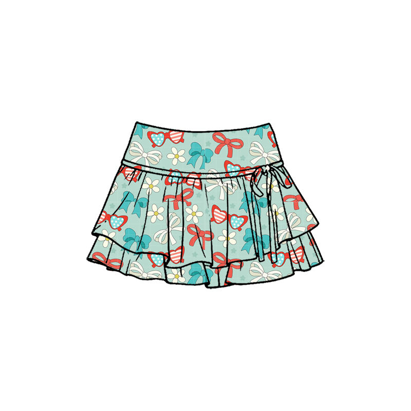 กระโปรงเด็กผู้หญิง GLK0262 ลายพิมพ์โบว์วันชาติอเมริกา 4 กรกฎาคม ระบายอากาศได้ดี เหมาะสำหรับเด็กเล็ก ฤดูร้อน ขายส่ง กระโปรงโยคะ