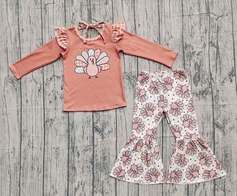 GLP2605 RTS ชุดไก่งวงเด็กผู้หญิงตัวเล็กสีส้มชุดเสื้อผ้าเด็กขายส่ง