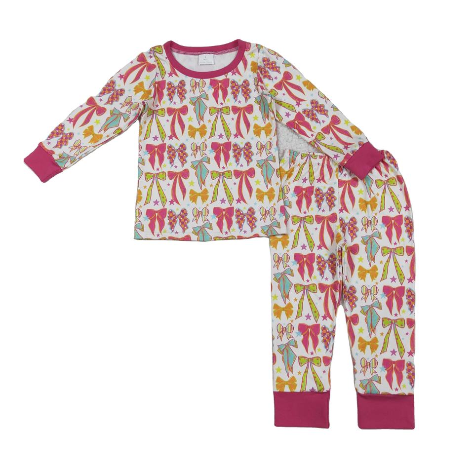 ชุด GLP2615แขนยาวสำหรับเด็กผู้หญิงชุดเสื้อผ้าสำหรับเด็กเล็กพิมพ์ลายโบว์สีสันสดใส