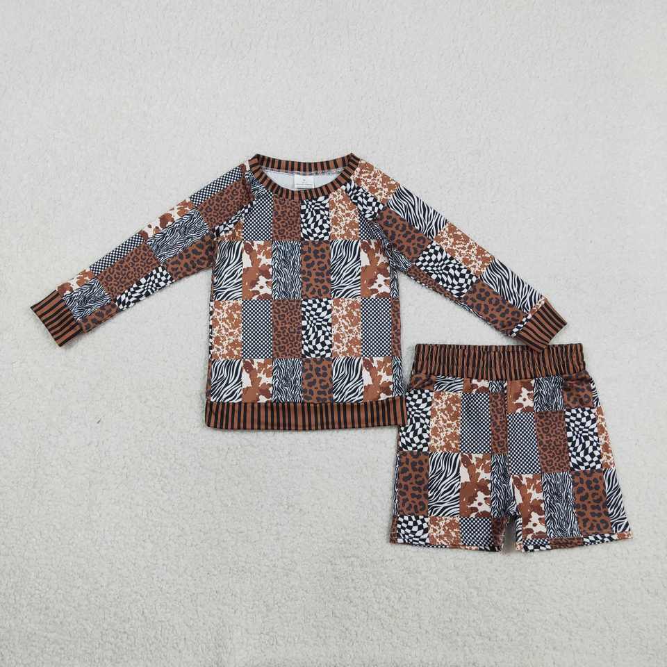 GLS0079 RTS ชุดแขนยาวพิมพ์ลายเสือดาวสำหรับเด็กผู้หญิงชุดเด็กขายส่ง