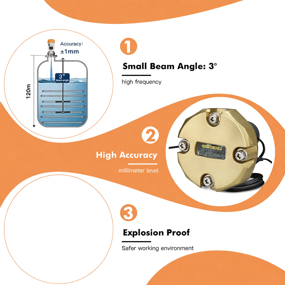 เซ็นเซอร์ระดับเรดาร์80GHz GLT741สำหรับการตรวจสอบระดับของเหลวและของแข็ง