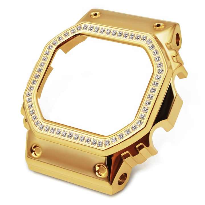 ตัวเรือนนาฬิกา GM5600 แบบฝังเพชรสีทอง ขอบตัวเรือนสแตนเลสสตีล ขอบตัวเรือนโลหะแบบเปลี่ยนได้ ขอบตัวเรือนนาฬิกาแบบฝังเพชรสีทอง