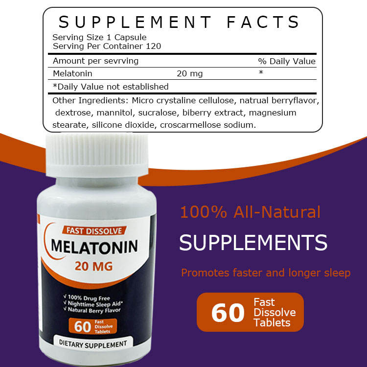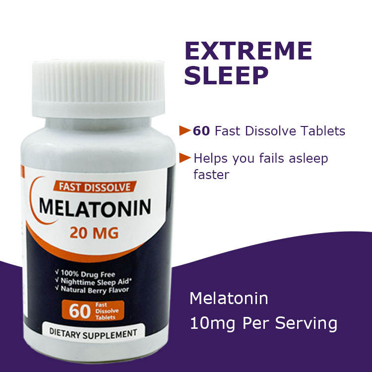 ผู้ผลิตเมลาโทนินที่ได้รับการรับรองมาตรฐาน GMP ขนาด 20 มก. สูตรเข้มข้นพิเศษ รับผลิตตามสั่ง MOQ ต่ำ ยาเม็ดช่วยการนอนหลับแบบฉลากส่วนตัว ขายส่ง