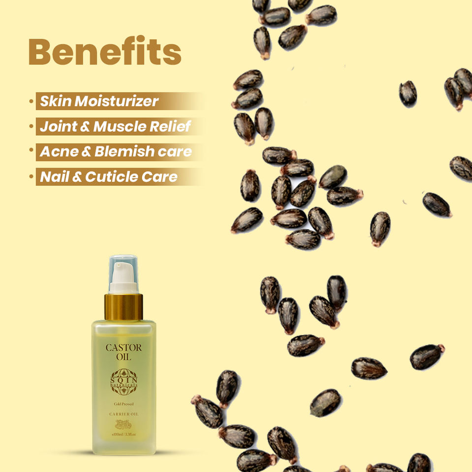 น้ำมันละหุ่งธรรมชาติ ได้รับการรับรองมาตรฐาน GMP ผลิตด้วยวิธีการสกัดเย็นจากเมล็ด Ricinus Communis สำหรับผิว ผม นวดตัว มีจำหน่ายในปริมาณมาก SQIN Botanicals