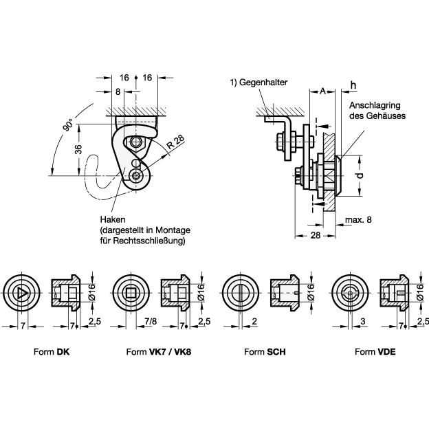 GN 115.8 Furniture Locks Hook Design with Plug Actuation