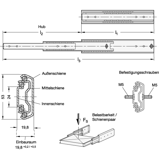 GN 1460 Stainless Steel Telescopic Drawer Slides Full Extension Product