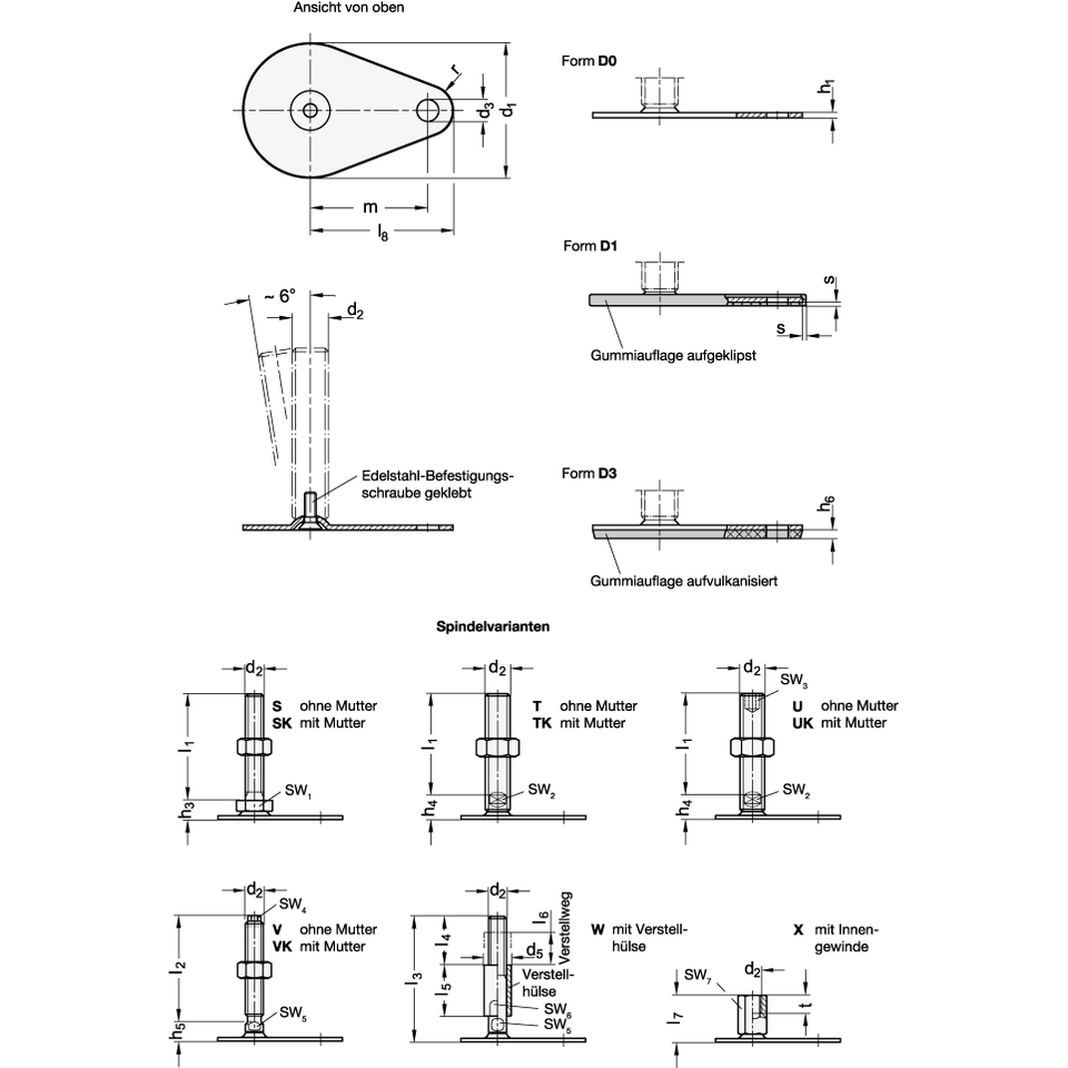 เท้าปรับได้สำหรับองค์ประกอบการปรับความสูงของเครื่องจักรอุตสาหกรรม