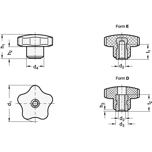 GN 5337 Star Handles Duroplast Featuring Brass Socket for Machinery & Industrial Equipment