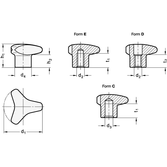GN 5345 Stainless Steel Three-Arm Handles 1.4305 for Machinery & Industrial Equipment