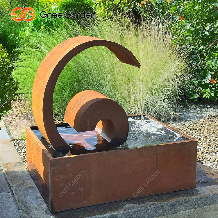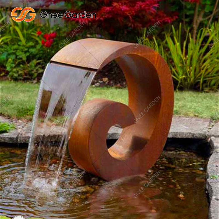 Gnee น้ำพุน้ำแบบเกลียวเหล็กคอร์เทนปรับแต่งได้ประติมากรรมโลหะสำหรับสวนกลางแจ้งคุณลักษณะน้ำ