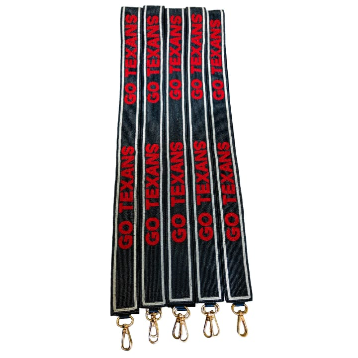 สายกระเป๋าลูกปัดแบบกำหนดเอง GO TEXANS สีขาวทอง สายกระเป๋าลูกปัดเม็ดเล็ก อุปกรณ์เสริมแฟชั่น โดย glowin fashion