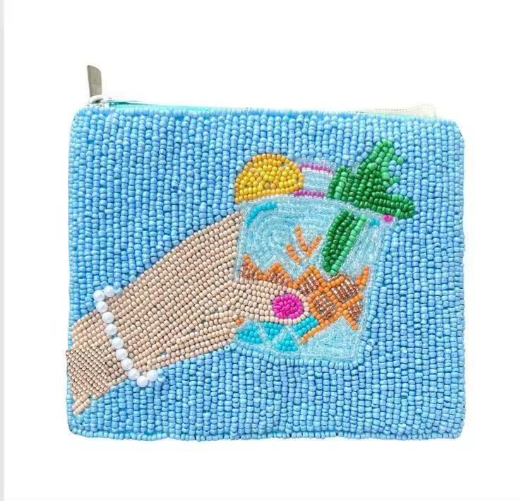 กระเป๋าใส่เหรียญปักลายมือทำประดับลูกปัดลายวัว งานคราฟต์คริสตัล สีและโลโก้สั่งทำได้ สำหรับผู้หญิง