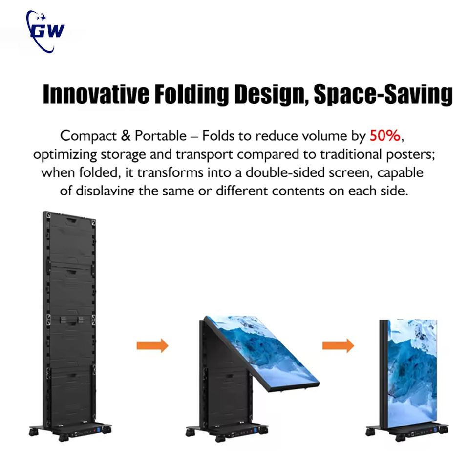 หน้าจอโปสเตอร์ LED แบบพับได้สำหรับร้านค้า P2.5 P1.8 P1.5 gob แบบ P1.2แบนเนอร์ดิจิทัลแบบพกพา