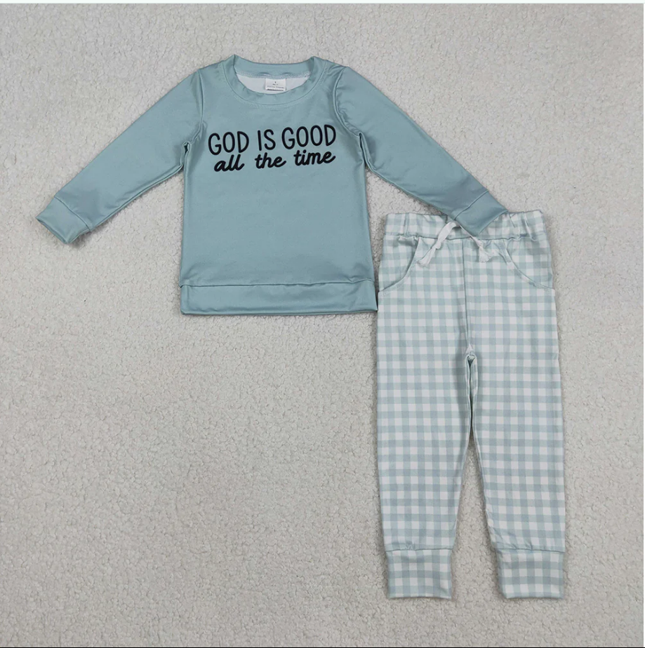 พระเจ้าเป็นผู้ที่ดีเสมอ กางเกงลายสก๊อตมีกระเป๋า เสื้อผ้าเด็ก ชุดสำหรับพี่น้อง
