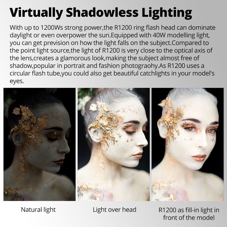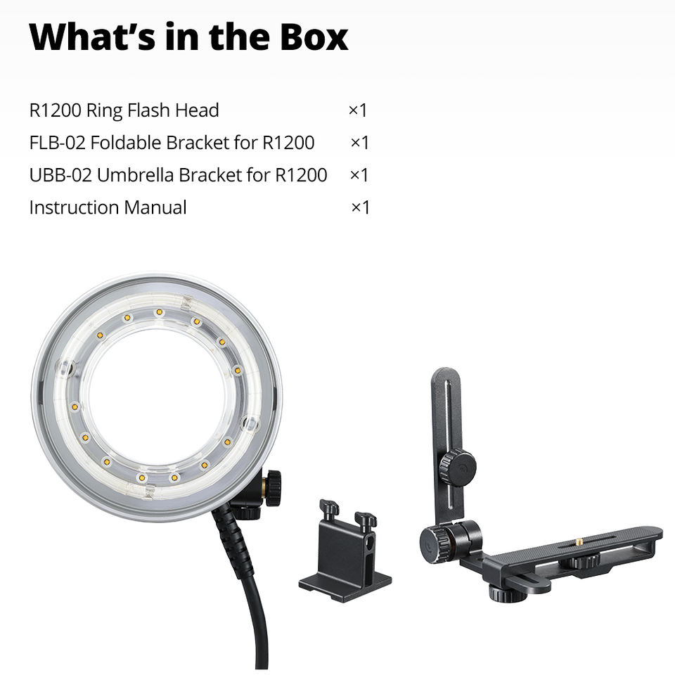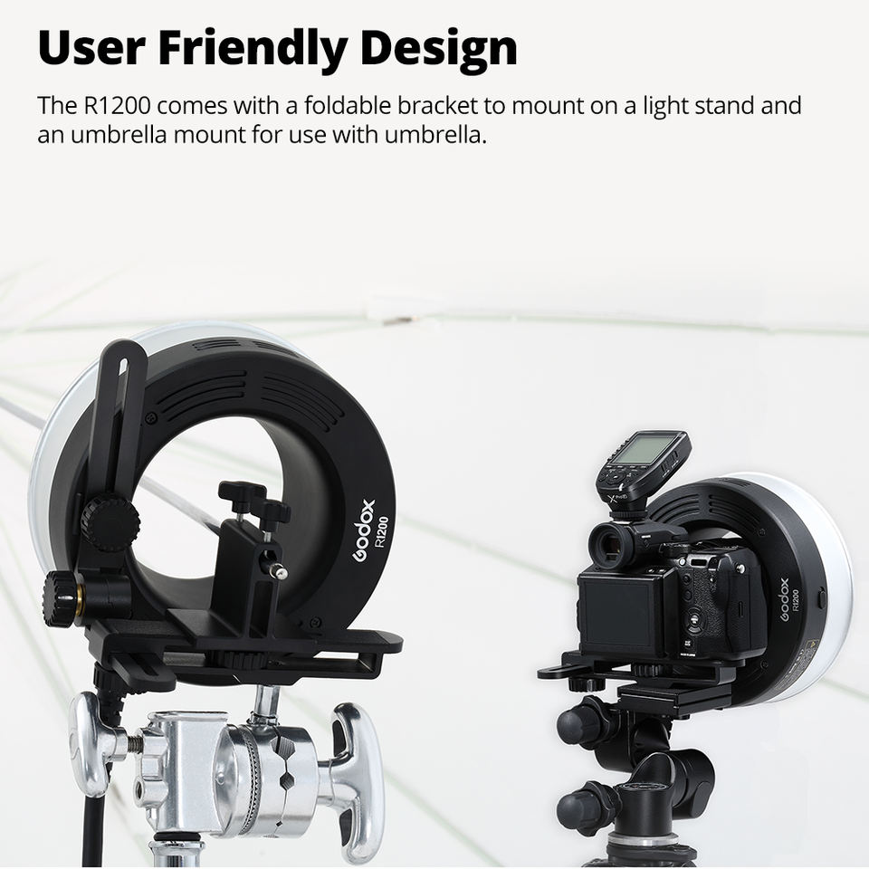 GODOX R1200ไฟแฟลชแบบวงแหวนแบบพกพาหัวแฟลชไลท์สำหรับกล้อง Sony Canon Nikon Fuji AD1200pro GODOX