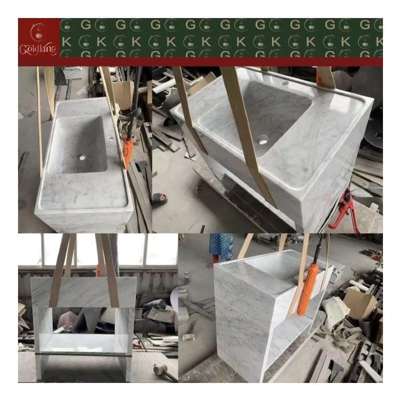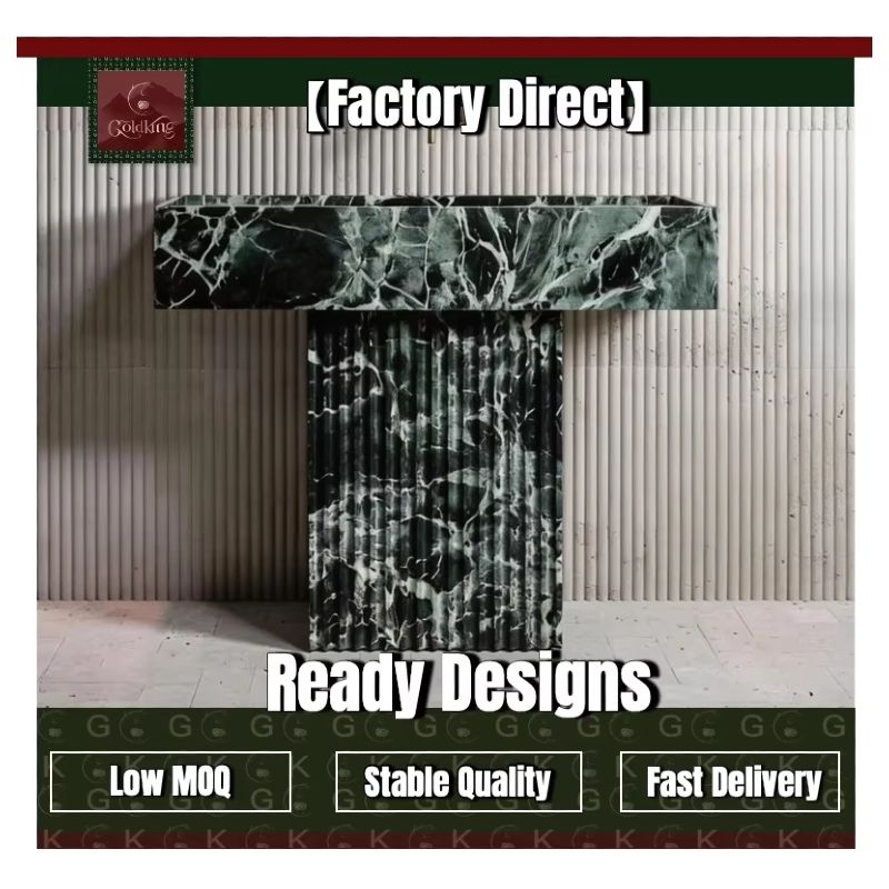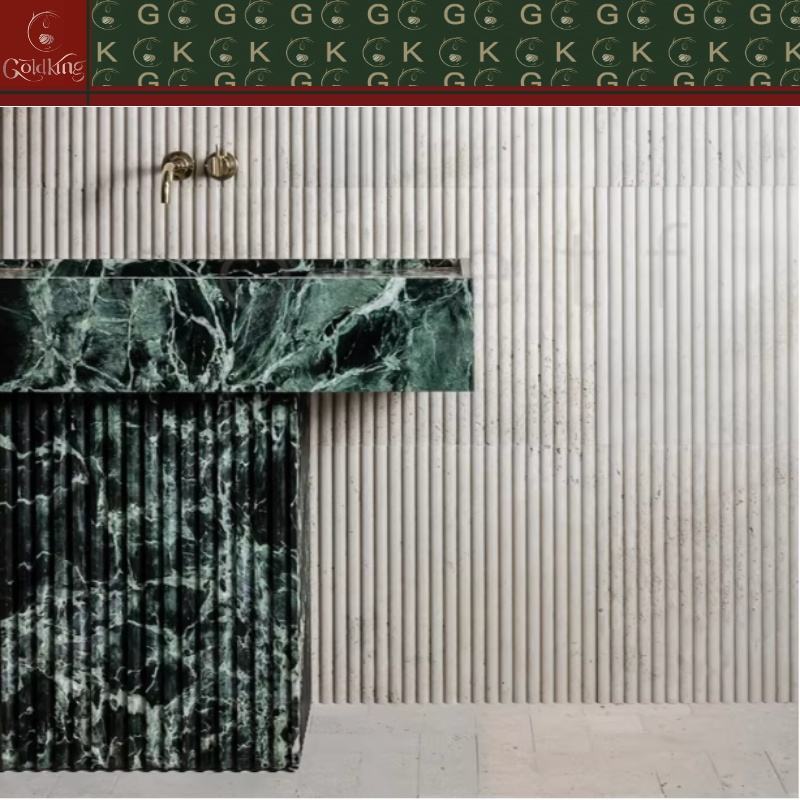 อ่างล้างหน้าหินอ่อนสีเขียว GOLDKING Premium Verde Alpi ดีไซน์ฐานลายร่อง สำหรับโรงแรม อพาร์ทเมนต์ และวิลล่า