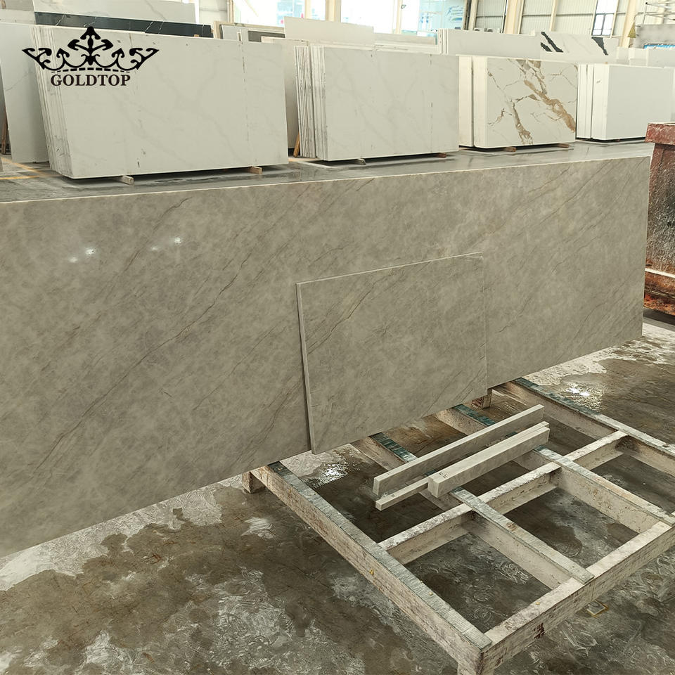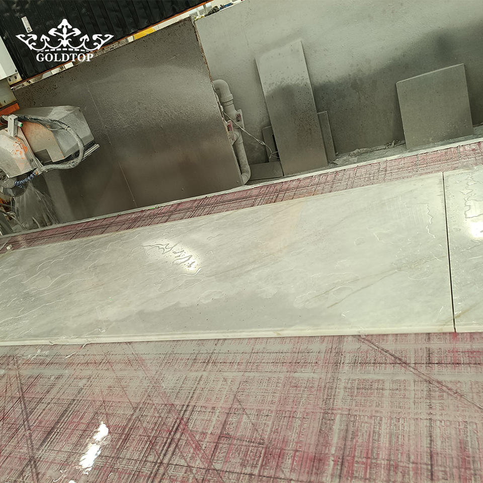 แผ่นหินเทียมพิมพ์ลายทัชมาฮาล GOLDTOP Luxury Polished 7006 ผิวสัมผัสสีขาวบริสุทธิ์ทันสมัยสำหรับห้องน้ำหรู