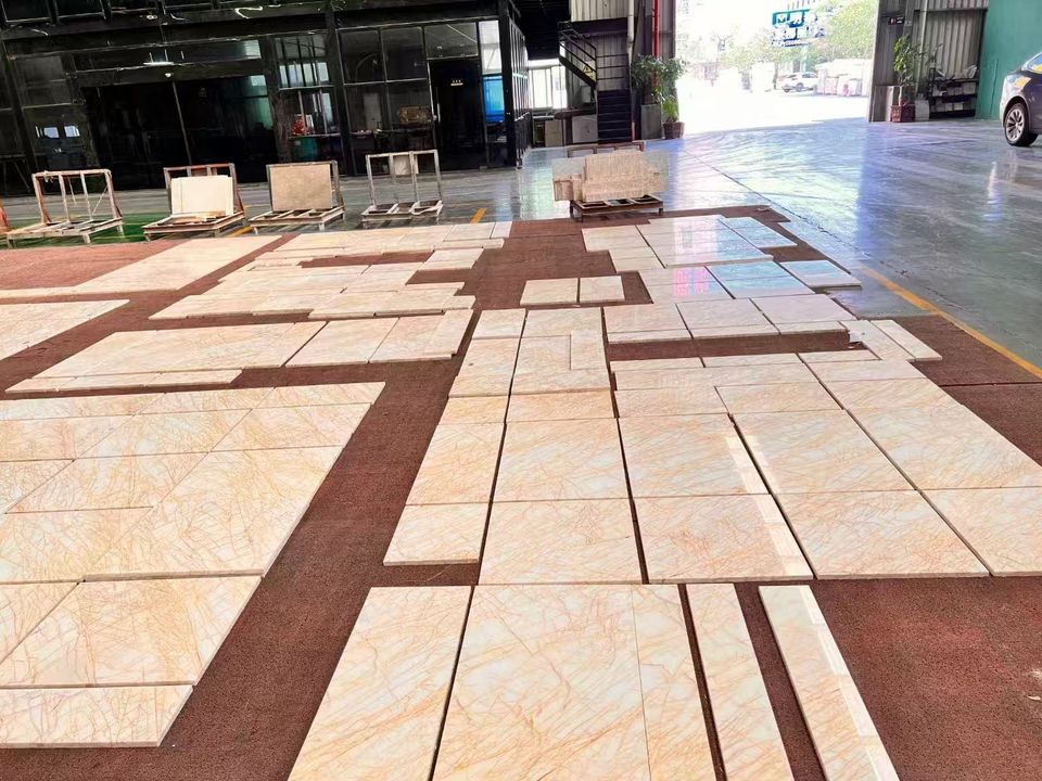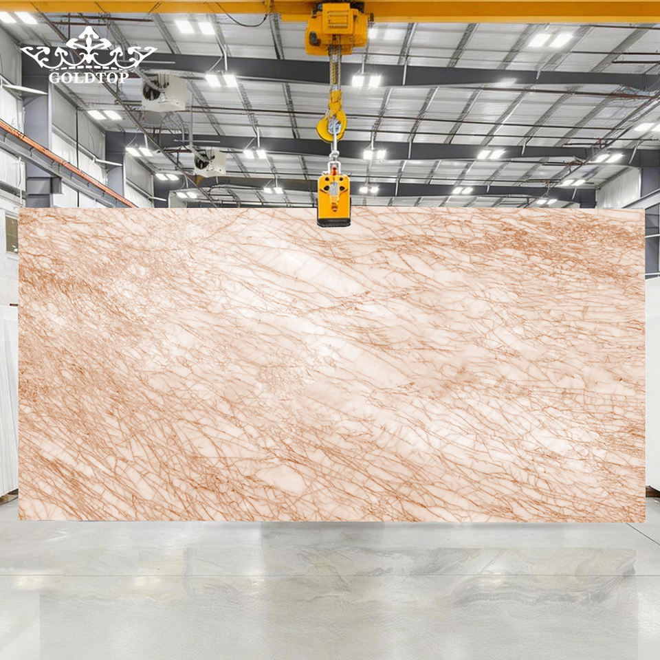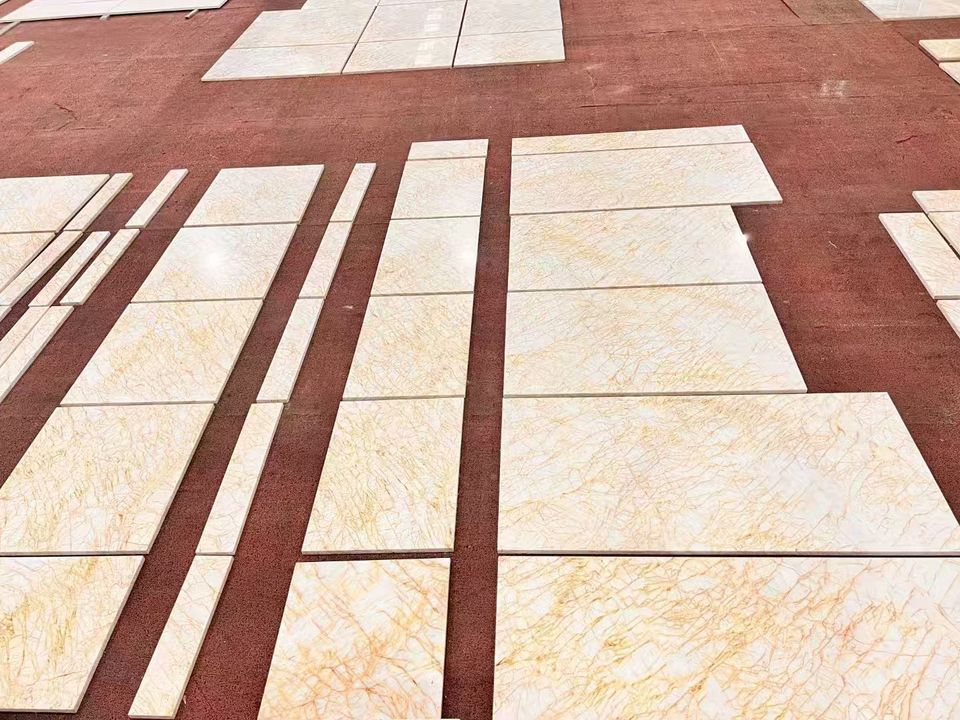 หินอ่อนสีทองขัดเงาเกรดพรีเมียม GOLDTOP ลายเส้นทองแบบกรีก สำหรับปูพื้นล็อบบี้หรูหราและผนังตกแต่ง