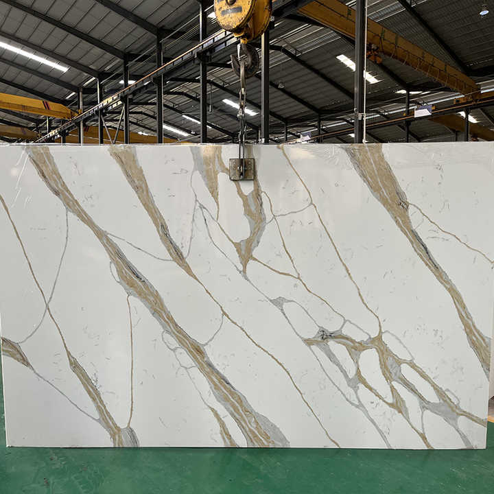 หิน GOLDTOP ODM/OEM ควอตซ์สังเคราะห์ 5072 Calacatta Stella แผ่นใหญ่สำหรับเคาน์เตอร์ทันสมัย พื้น โต๊ะ ท็อปในร่ม และท็อปห้องน้ำ