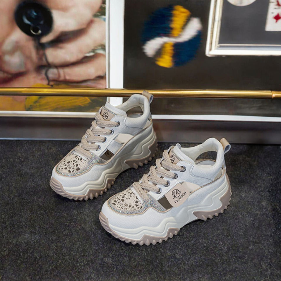 รองเท้าวิ่ง GON22 สำหรับฤดูใบไม้ผลิและฤดูร้อน ระบายอากาศได้ดี ดีไซน์แบบผูกเชือก เพิ่มความสูง ดีไซน์แบบโปร่ง สีพื้น พื้นรองเท้า PU วัสดุ EVA