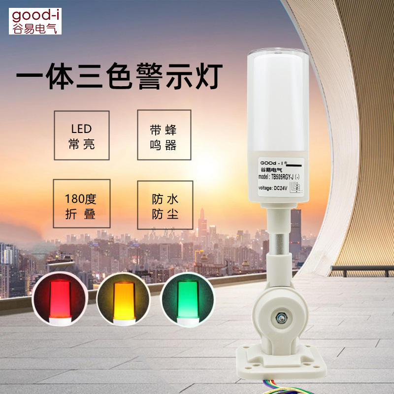 ไฟเตือนแบบสามสี GOOD-I รุ่น TB505-RGY-J แบบพับได้ พร้อมเสียงและแสงเตือน ไฟแสดงสถานะเครื่องจักรแบบติดตั้งบนเสา
