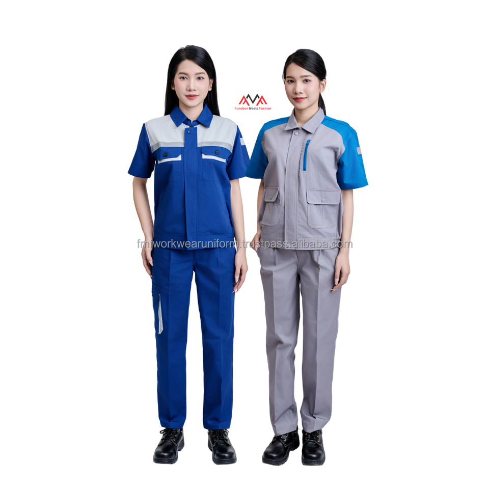 ชุดยูนิฟอร์มช่างไฟฟ้าคุณภาพดี ชุดทำงานช่างยานยนต์ ชุดช่างเชื่อม เสื้อผ้าทำงาน โรงงานผลิต ผ้า PE cotton FMF โรงงาน ขั้นต่ำในการสั่งซื้อน้อย