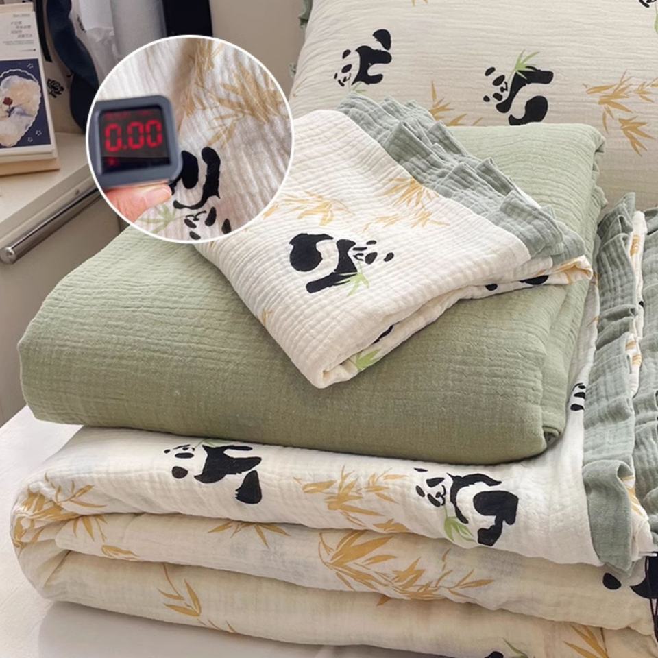 ชุดปลอกผ้านวมผ้าฝ้ายออร์แกนิกพิมพ์ลายแพนด้าน่ารัก3ชิ้นสำหรับทารกอ่อนโยนต่อผิวบอบบางได้รับการรับรองจาก Gots