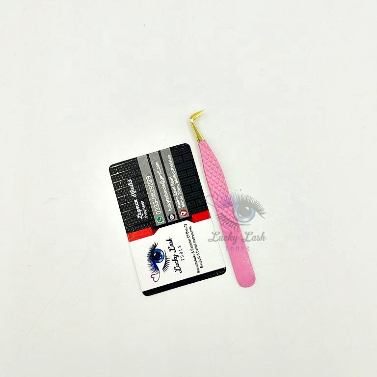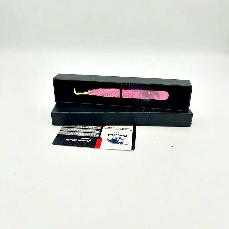 GPT-สีชมพูพร้อมปลายสีทองแหนบสำหรับต่อขนตาปริมาณ90องศาสำหรับการต่อขนตาบรรจุภัณฑ์/โลโก้แบบกำหนดเอง