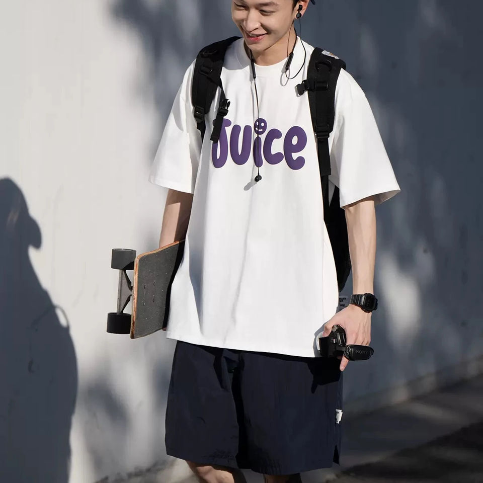 เสื้อยืดแขนสั้นทรงโอเวอร์ไซส์สำหรับผู้ชาย GQ ผ้าฝ้าย 100% น้ำหนัก 200 กรัม ผ้าถักเนื้อหนา พิมพ์ลายซิลค์สกรีน ปักลาย