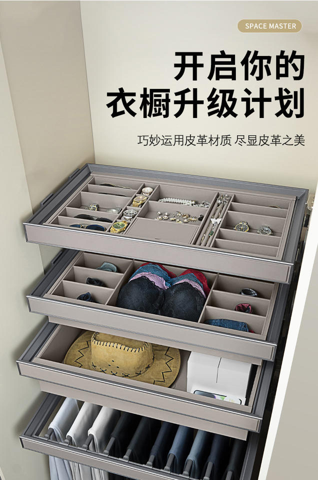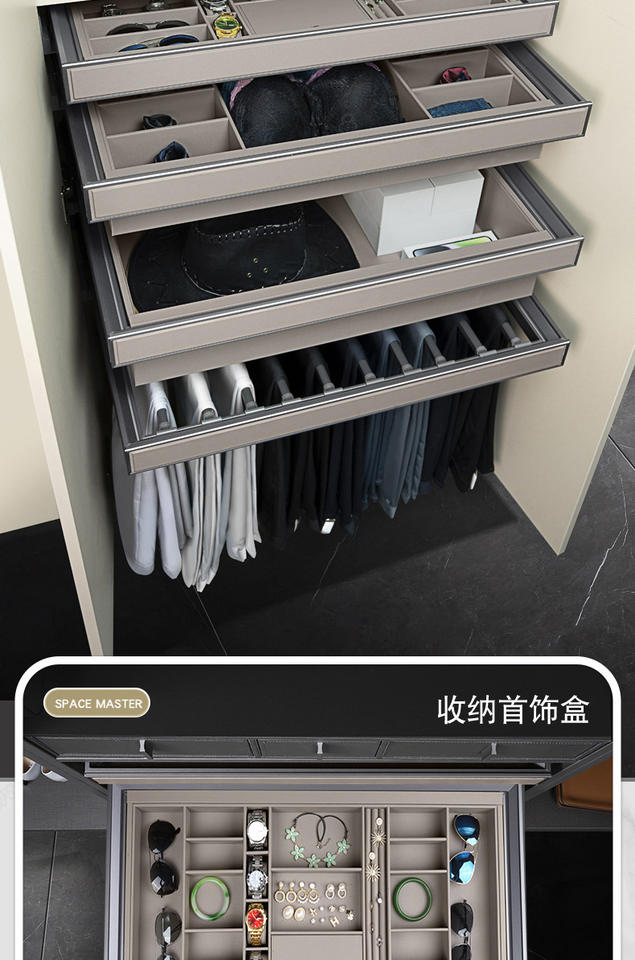ฮาร์ดแวร์แบบดึงออกได้จากอลูมิเนียมอัลลอยด์ GQK สำหรับตู้เสื้อผ้าในห้องนอนและกล่องใส่เครื่องประดับ