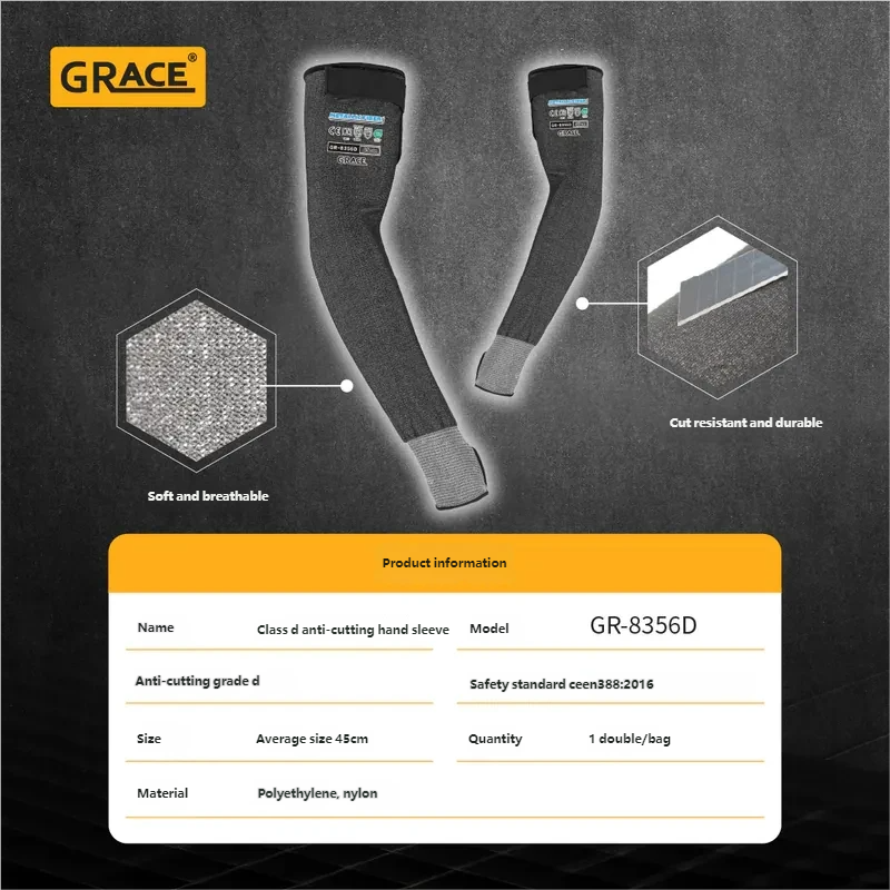 ปลอกแขนกันบาดระดับ D รุ่น GR-8356 ผลิตจากผ้าถักที่ทนทาน น้ำหนักเบา และระบายอากาศได้ดี เหมาะสำหรับงานอุตสาหกรรมและงานก่อสร้าง