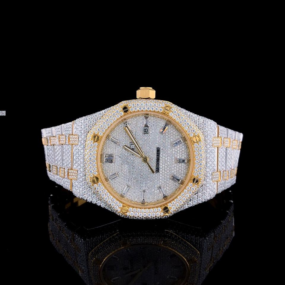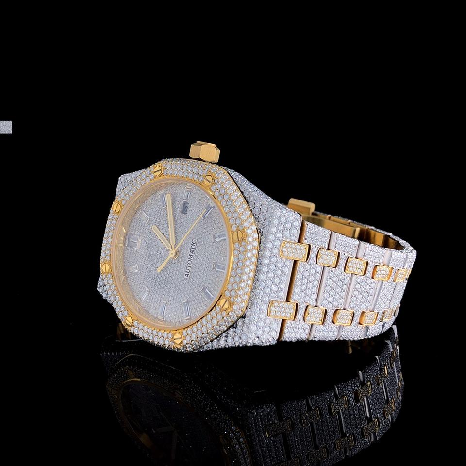 นาฬิกาฮิปฮอปเพชร GRA Certification คุณภาพสูง งานแฮนด์เมดเต็มรูปแบบ ประดับเพชรแบบ Iced Out ระบบออโตเมติก กลไกจักรกล ประดับเพชร VVS Moissanite