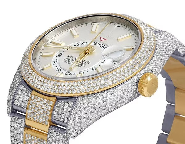 นาฬิกาข้อมือฮิปฮอปแบบอนาล็อกอัตโนมัติ ตัวเรือนสแตนเลสสีเหลือง ประดับเพชรโมอิสซาไนต์ VVS รับรองโดย GRA ขนาด 20 มม. กระจกแบบ Iced