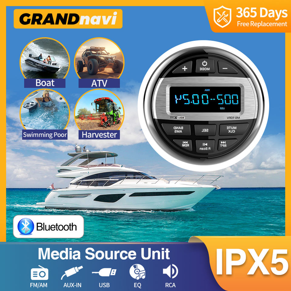 GRANDnavi วิทยุทางทะเลลําโพงเสียงสเตอริโอพลังงานทางทะเลเครื่องเล่นสื่อกีฬาเรือยอชท์ ATV UTV รถจักรยานยนต์