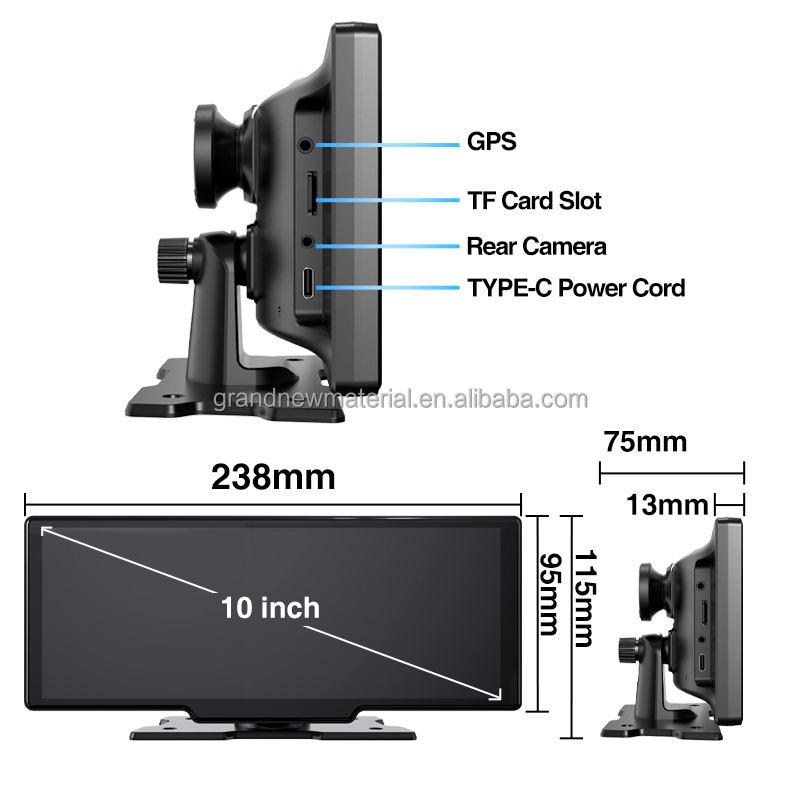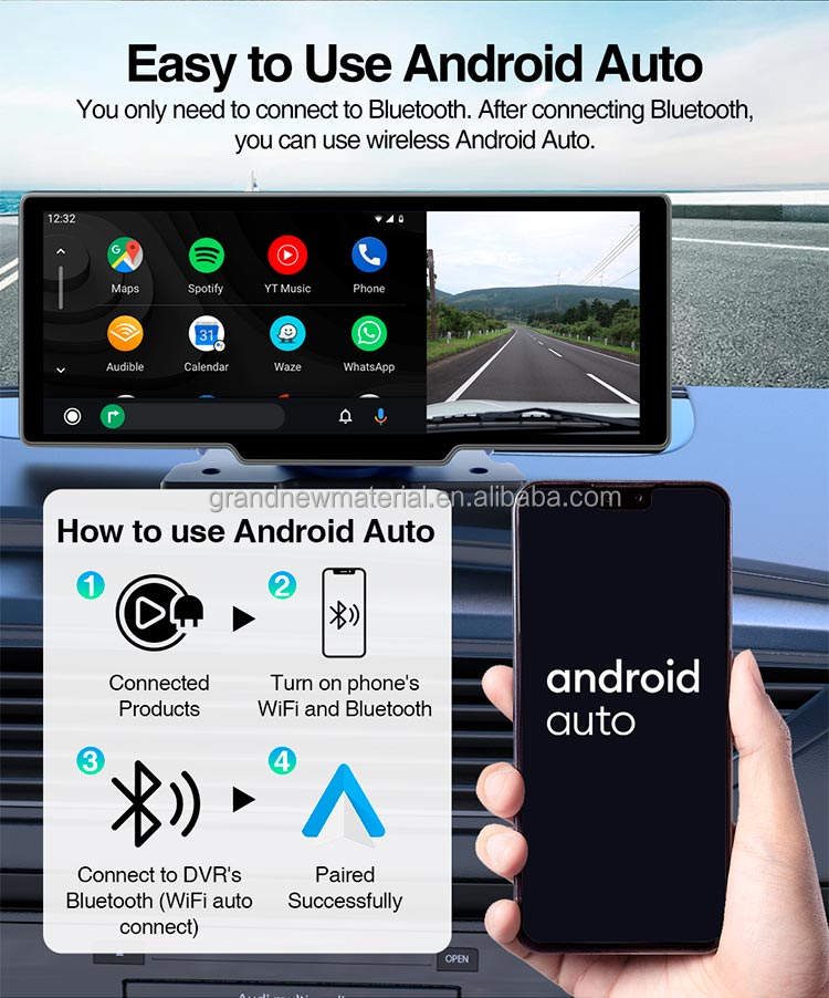 Grandnavi จอติดรถยนต์แบบไร้สาย, หน้าจออัจฉริยะติดรถยนต์ DVR ไร้สาย CarPlay แอนดรอยด์อัตโนมัติสำหรับผู้บุกเบิกการบันทึกรถยนต์