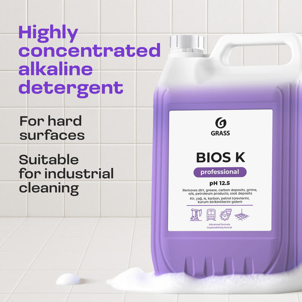 GRASS BIOS-K 5 กก. น้ำยาซักผ้าสูตรเข้มข้นพิเศษชนิดอัลคาไลน์สำหรับมืออาชีพ