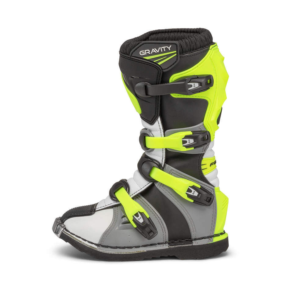 GRAVITY Premium Cross Moto Boots in Grey/White/Yellow Fluo with Key Features