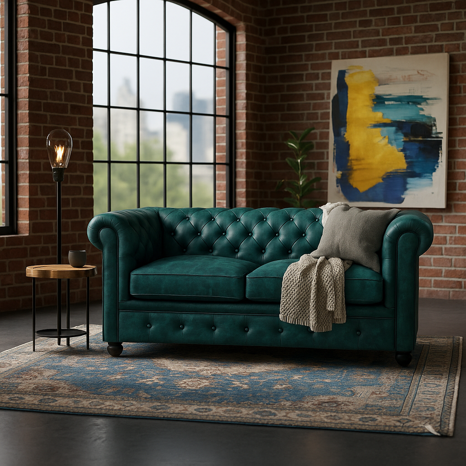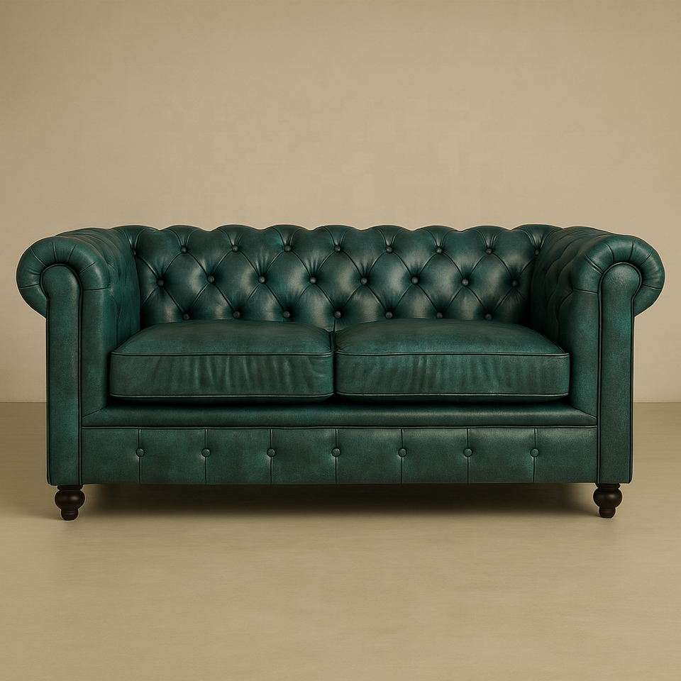 Akku Art โซฟาหนังแท้ chesterfield Green หนึ่งที่นั่ง | ดีไซน์กระจุกคลาสสิก | สไตล์สุภาพบุรุษวินเทจ | ห้องนั่งเล่นที่ทันสมัย