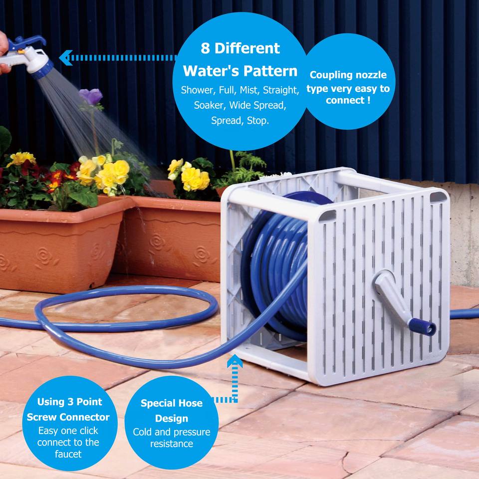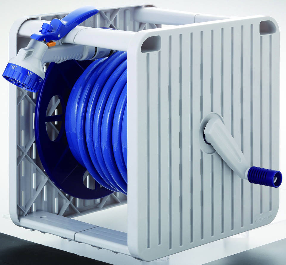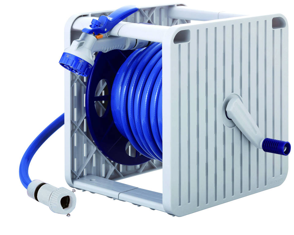 GREEN LIFE PRGS-20GN Light Grey Plastic Hose Reel G-Square Home Gardening Watering Tools Adjustable Rewindable Telescopic 12mm