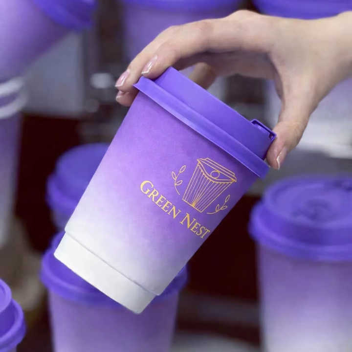 แก้วกระดาษ PE แบบใช้ครั้งเดียว GREEN NEST วัสดุเกรดอาหาร เป็นมิตรกับสิ่งแวดล้อม สำหรับเครื่องดื่มร้อน/เย็น พร้อมบริการพิมพ์โลโก้ตามสั่ง