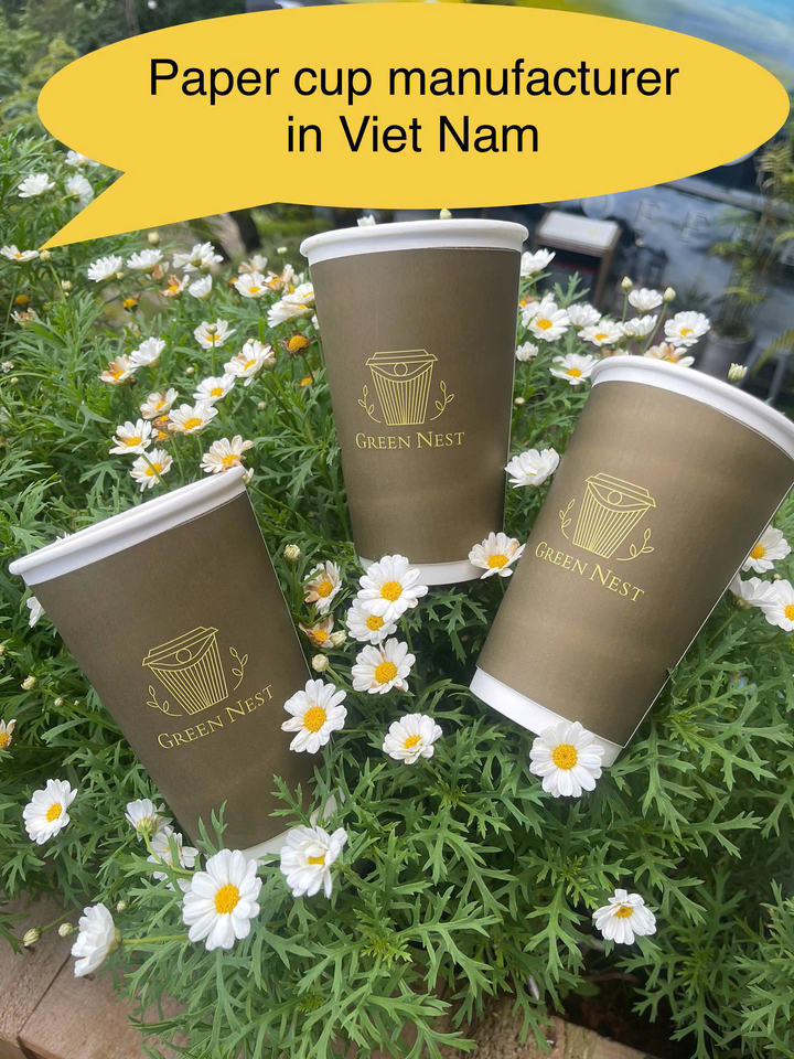 แก้วกระดาษแบบใช้แล้วทิ้ง GREEN NEST ผนังชั้นเดียว พิมพ์โลโก้ตามสั่ง ขนาด 10/16/20/24 ออนซ์ สำหรับกาแฟและเครื่องดื่มร้อน